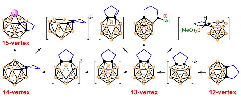 Ref.: Jian Zhang and Zuowei Xie. Synthesis, Structure, and Reactivity of 13- and 14-Vertex Carboranes. Acc. Chem. Res. 2014, 47, 1623-1633