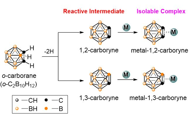 碳硼炔可以被过渡金属捕获,形成稳定的金属-碳硼炔复合物,其反应性可以通过金属中心的电子排布来调节。